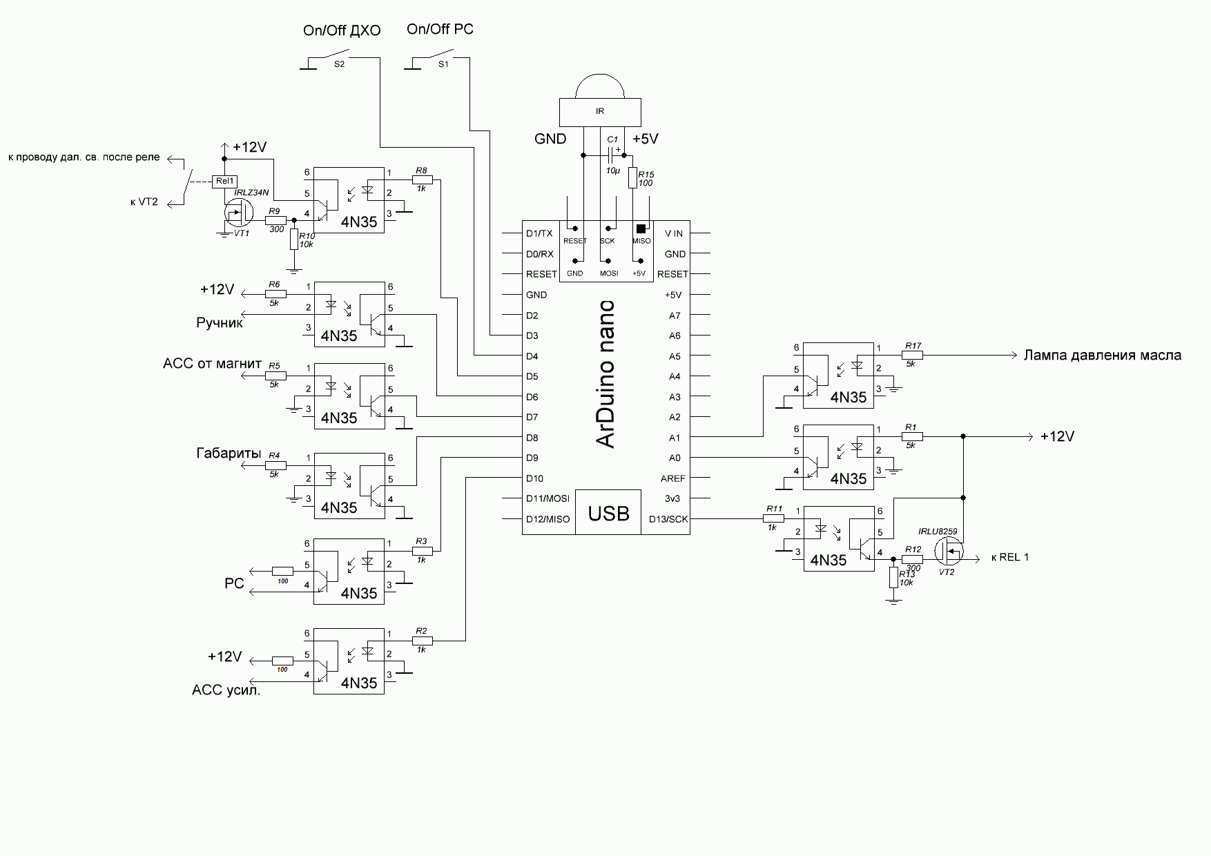 Схему подправил в шапке, а на счет реле мне так в душе почему-то спокойнее. Добрый человек мне бы по поводу скетча, что нибудь придумать да проги управления, а то я на счет программирования как во вьетнамском плену.:(