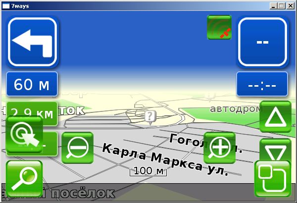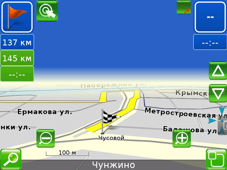 В программе отсутствует автоматическое масштабирование карты, что, конечно, неудобно. К тому же иконки, изменяющие масштаб, убираются с экрана автоматически, и, чтобы их вернуть, надо дополнительно нажать на экран (а это не тачскрин, а тачпад).