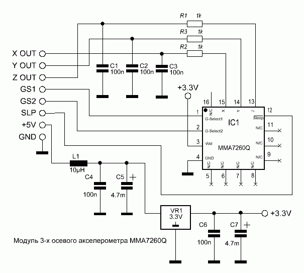 1. трехосевой акселерометр