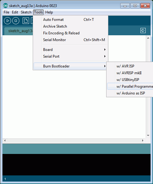 Выбираем команду прошить, LPT программатором