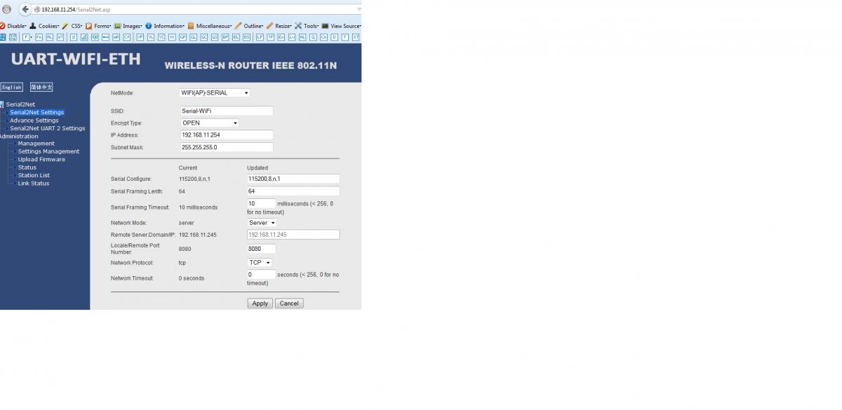4. Перевел wifi в режим WIFI(AP)-SERIAL (как на картинке ниже):