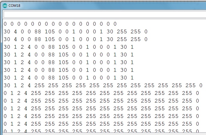 Красным идентификаторы (30), синим не правильные данные, вместо первого 255, должен быть ноль.