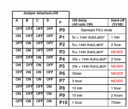 M2-ATX имеет 8 доступных для выбора пользовательских временных режимов, управляемых микроконтроллером. Они позволяют Вам выбрать до 8 вариантов выключения компьютера по времени, в зависимости от статуса ситемы зажигания. Если удалить все выбираемые пользователем настройки, то M2-ATX превратится в традиционный блок питания без возможности его контроля системой зажигания и его можно будет использовать в обычных системах.