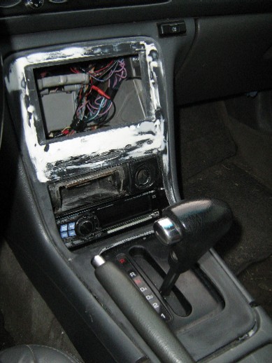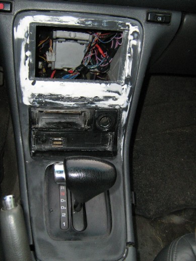И еще один мой косяк это то, что грунтом перед покраской я не воспользовался. Короче до салонного качества было ого-го))) А еще короче - руки не от туда. В конечном итоге я решил истратиться на перетяжку кожей, отдал консоль с магнитолой одним ребятам в Питере на Саперном переулке рядом с Чернышевской, а вместе с консолью 5 т.р. Как оказалось эта была моя вторая грубейшая ошибка. У этих ребят руки не только из заднего места растут, как мне показалось рук у них вообще нет. Сделали очень безобразно из толстой грубой кожи прошили строчки криво вобщем зря я подгонял моник до миллиметра, чтобы все было ровно кожей все ровности и неровности были убиты напроч. Фоток нет, де и фотать не хотелось. В итоге проездив с этой порнографией пару дней, и то только потому, что по музыке соскучился, забрал все домой и выдрал всю кожу. Далее отчистил от клея, по новой зашпаклевал и зашкурил.