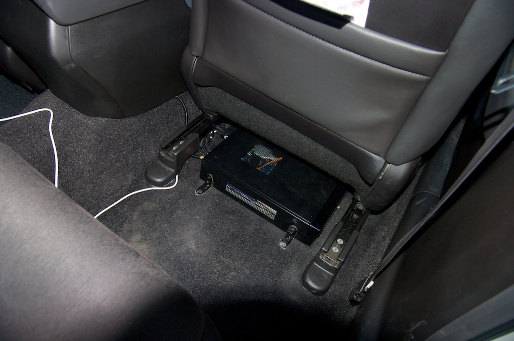 Системник разместил под пассажирским сиденьем. Провода питания протянуты от АКБ.