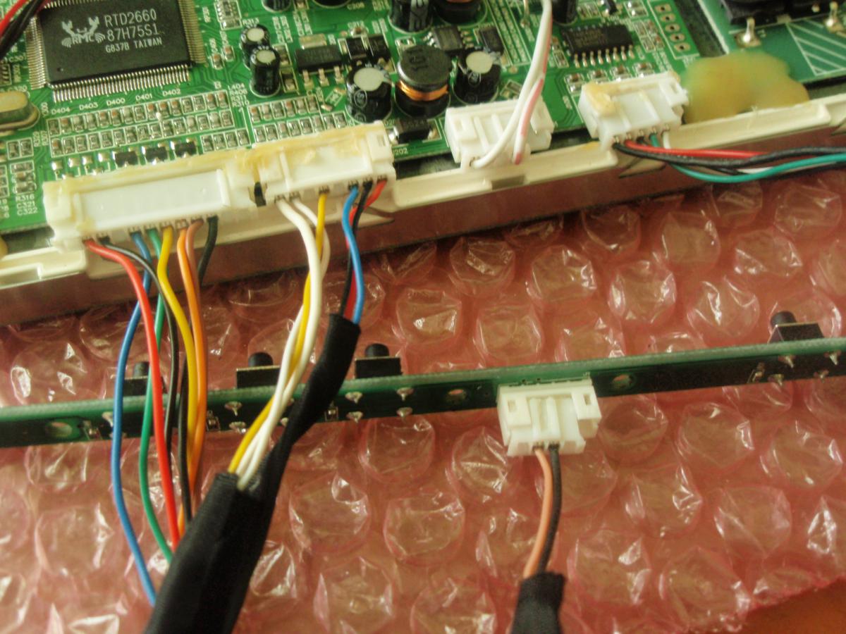 Мои корявые ручки разобрали монитор, делал замеры в машине. Посмотрел, разъёмы вроде обычные, термоклей отдирал аккуратно. Дошло дело до в ключения, чтобы замерить видимую границу и вот досада не включается. Прошу подсказать, с каким бубном танцивать.