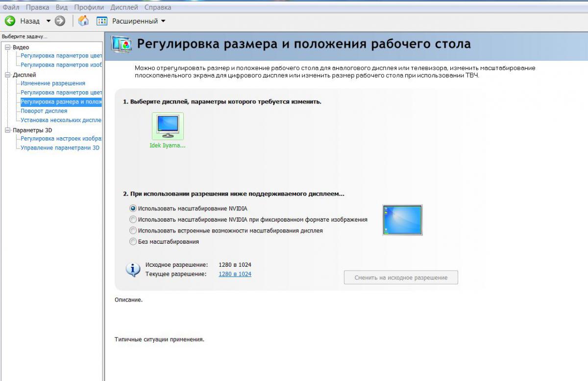 А через меню монитора не пробовал сжимать?