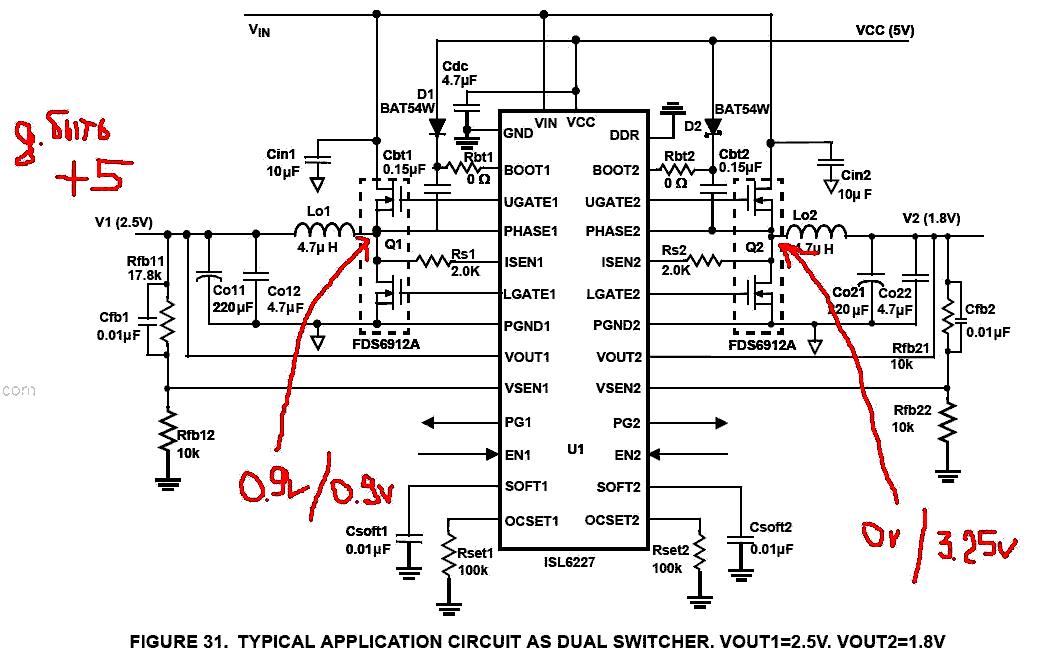 Здравствуйте. Внезапно умерло 5в в этом блоке. Эта часть схемы собана на 6227 - часть на 3.2 в работает, а на 5в нет.