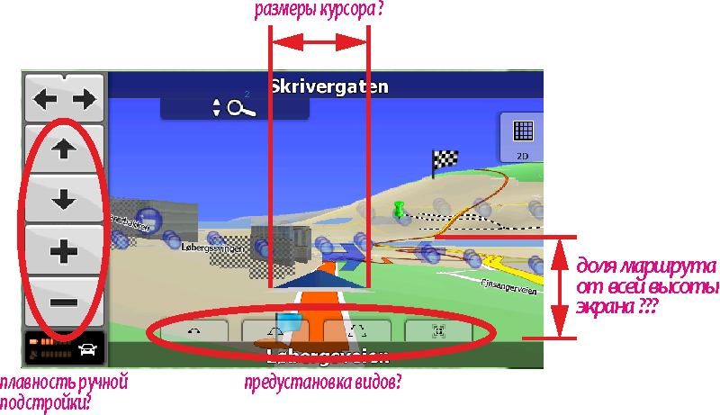 И вы себе думаете, что это всё? Ну, таки нет!? Ты крутишь баранку, спасаешь пешеходов от травматолога, а эта зверюга просто издевается. Тыркнешь ему в стрелку вниз,- так от показывает тебя сверху. Тыркнешь ему в стрелку вверх,- он на весь экран рисует облака!Я же не на кукурузнике!.. А чтоб постепенно, плавно, по-людски, - так нет!..