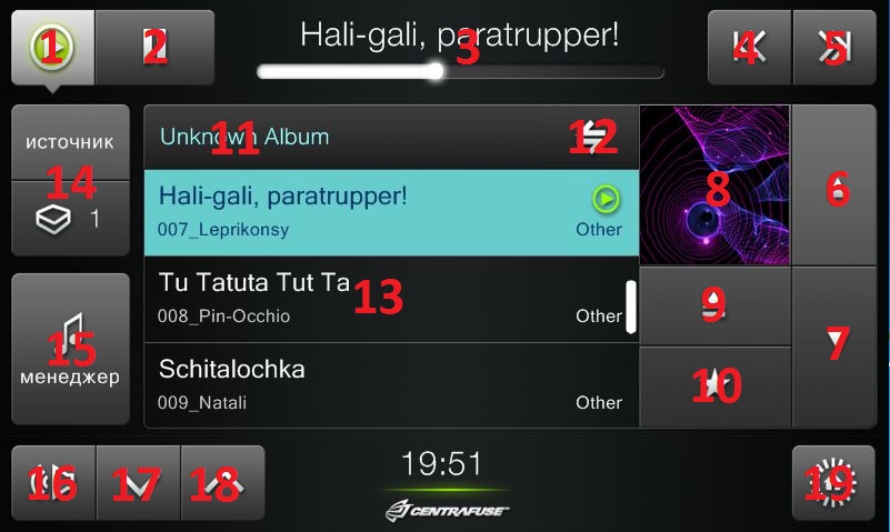 Надо проверить возможность перехвата нажатия кнопок 1,2,4,5, теоретически возможно. А вот отображать название песни в поле 3 и пользоваться родной перемоткой - пока не уверен. Пробовать начну с 20.11.2010.