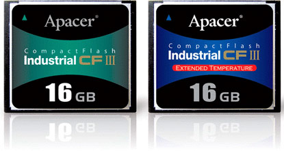 Компания Apacer Technology выпустила новое поколение карт памяти Industrial Compact Flash III (диапазон рабочих температур простирается от –40 до + 85°С). Надежность и простота использования делают CFIII идеальным устройством для хранения информации и частой ее перезаписи.