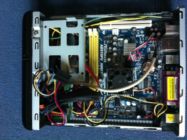 Добавил память DDR2 2Gb. теперь не полуфабрикат, а цельный комп. Всё работает, блок питания внешний в комплекте.
