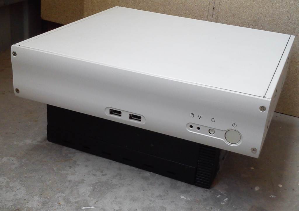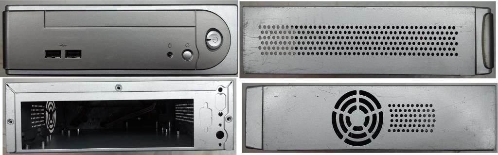 Размеры: Ширина: 29,5см. Высота: 6,2см. Глубина: 27см. В корпусе помещаются 2 стандартных HDD. Ноутбучных, можно установить намного больше. Толстые металлические стенки. Металлическая передняя панель. Две кнопки, большая на питание и маленькая на сброс. Две светодиода, зелёный на питание, и красный на работу диска. Также на передней панели корпуса есть два разъёма USB. B корпус также помещается плата в формате MicroATX, если выломать одно стойку. На передней панели две заглушки. Можно будет установить карт-риадер и CD/ DVD/Blu-Ray привод. На заднюю часть корпуса можно установить два вентилятора, размером 40*40мм. Можно установить какую либо плату расширения или видеокарту, использовав райзер.