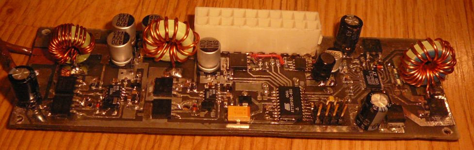 Сейчас думаю над функционалом прошивки. Пока сделал включение/выключение и выдачу оцифровки выходных напряжений БП по каналу RS232.