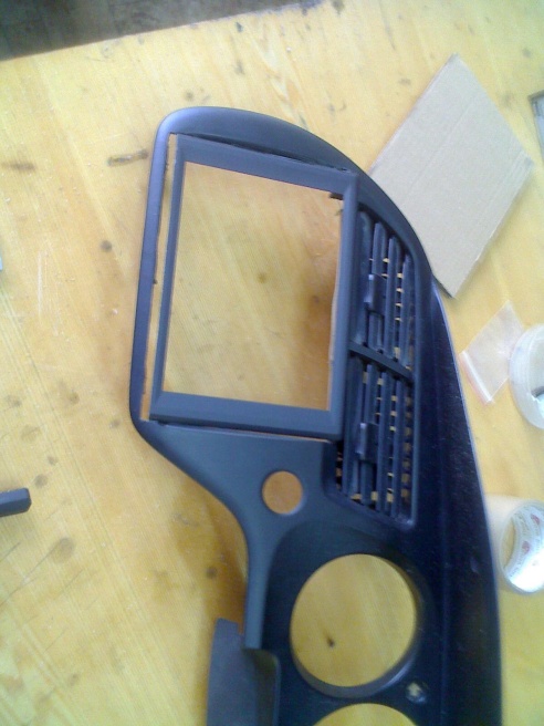 ''. Хотел купить монитор 16х9 он бы идеально встал в отверстие 2DIN но по ошибке заказал 4х3 и начались пляски вокруг панели приборов. Он уже и прилично больше по высоте. Чтобы салон машины не пострадал от переделок и последующей продажи авто была куплена на разборе облицовка панели приборов, вырезано отверстие под монитор. У монитора всё равно пришлось отрезать блок кнопок снизу. По периметру рамку монитора сначала зафиксировал суперклеем потом впаял медную сеточку.(технология костоправщиков- они бампера так ремонтируют).