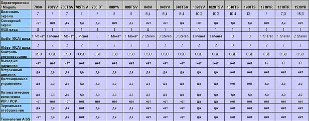 Для удобства сравнения характеристик мониторов Xenarc выкладываю сравнительную таблицу