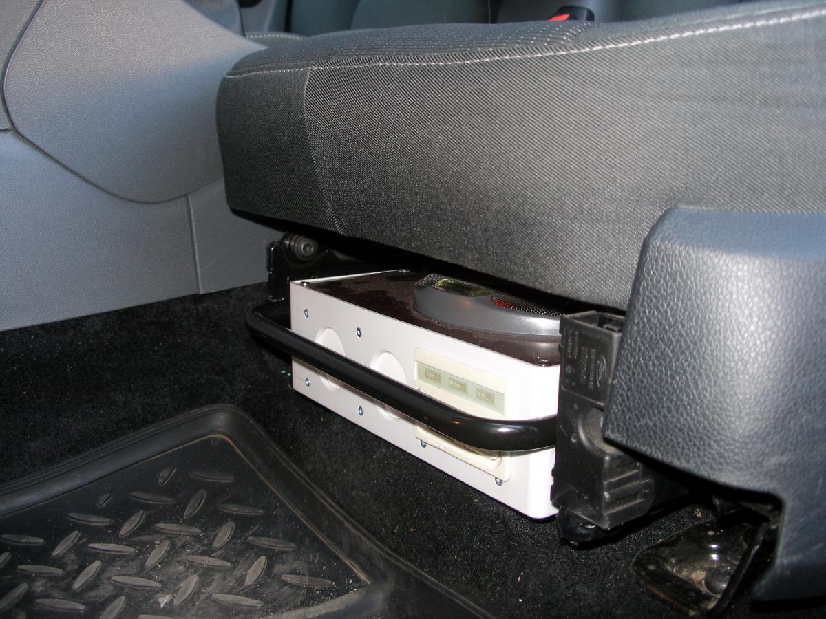 На крышке закрепил жесткий диск и кулер 120 мм(фотки не сделал к сожалению), штатный кулер процессора выключил. Устроил испытание: машина весь день стояла на солнце с работающим компом с включенными навигацией и муз. плейером, температура в салоне была 45 градусов, температура ядра при этом была 70 градусов, видео - 75 градусов. В общем - все в пределах. При повседневной езде выше 50 градусов не поднимается.