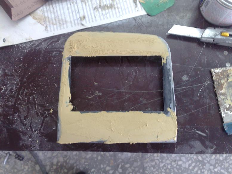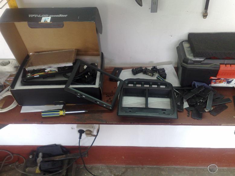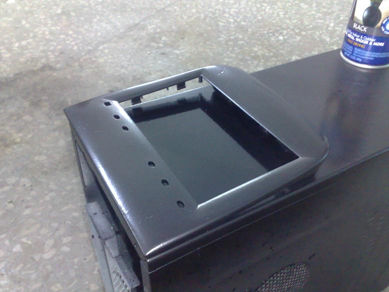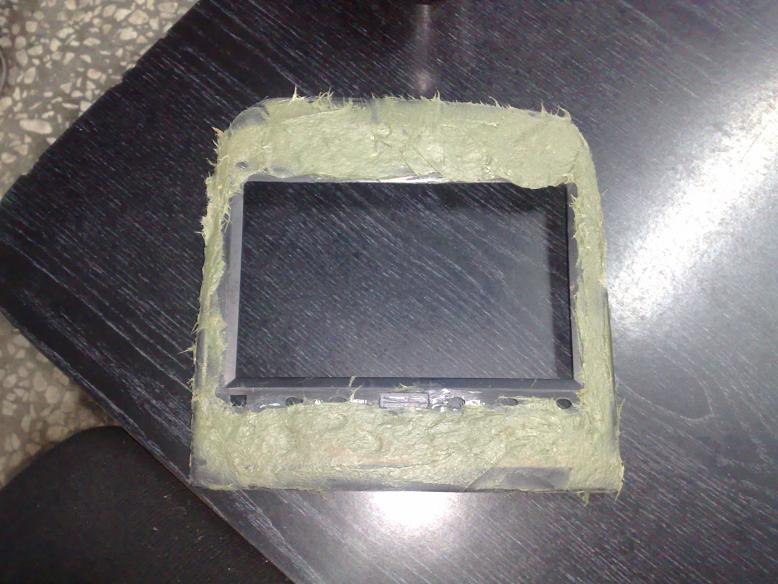 Изготовление мониторной(7" с питанием от БП) рамки с покраской и сушкой в центральный воздуховод заняло два дня( верхняя и нижняя части воздуховодов приклеенны к передней части монитора двухкомпонентной эпоксидкой, дальше стекловолоконная и чистовая шпатлевка BODY, потом эпоксидная высокотемпературная краска(для усиления,6 слоев), и наконец 2 слоя краски под "камень").
