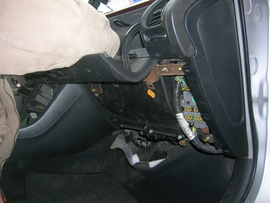 Но потом посмотрев в салон, нашёл место под пассажирским сидением. Не очень хотелось тащить провода через весь салон. Промерил и выяснил, что корпус в таком виде не влезет. Пришлось пилить его почти пополам: