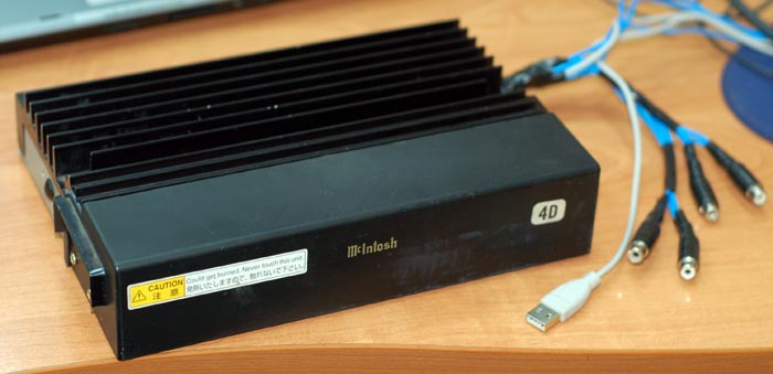 На старенький McIntosh EF-10801, вместо головы был прикручен чип CM108 (High Integrated USB Audio I/O Controller) Все уместилось внутри корпуса самого усилителя. Включение усилителя сделано по выходу на СМ108 (есть у него лампочка "готов") так что никаких пуков.кряков при закрузке не слышно..