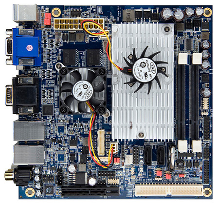 Looks like just another mini-ITX solution, but what's important is what lies beneath the board's heatsink and fans. Take away those and you'll get a good look at VIA's Trinity platform in action.