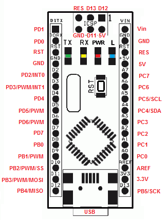 По умолчанию Распиновка выводов Arduino Nano и Atmega