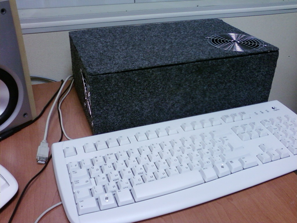 Фотки по ссылке чуть выше миниатюры. Что будешь делать с бликом матрицы, если снять пленку с резистивного сенсорного экрана? Не думал об обшивке системника черным карпетом? Он скроет неаккуратности металлического корпуса, системник будет неприметен. Кроме того, он будет необычно выглядеть. Вот мой старый опыт, как говорится, "я его слепила из того, что было" :-) :