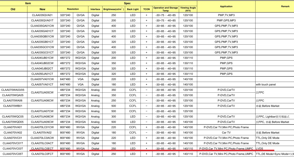 Итак, матрица claa070lc0ect. Все, что удалось узнать, так это то, что они LVDS.