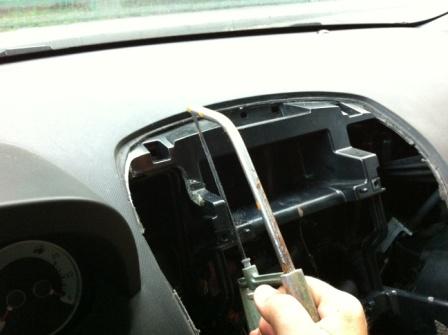 Сняв консоль, понял, что если сдвинуть вниз бортовой компьютер (далее БК), то его разъемы не поместятся. Тогда я в первый раз взял пилу и получилось вот что: