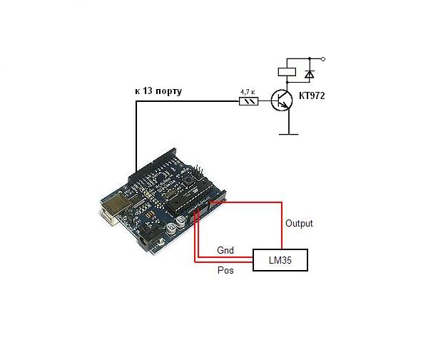 Управляющий релюшкой сигнал берется с 13 цифрового порта