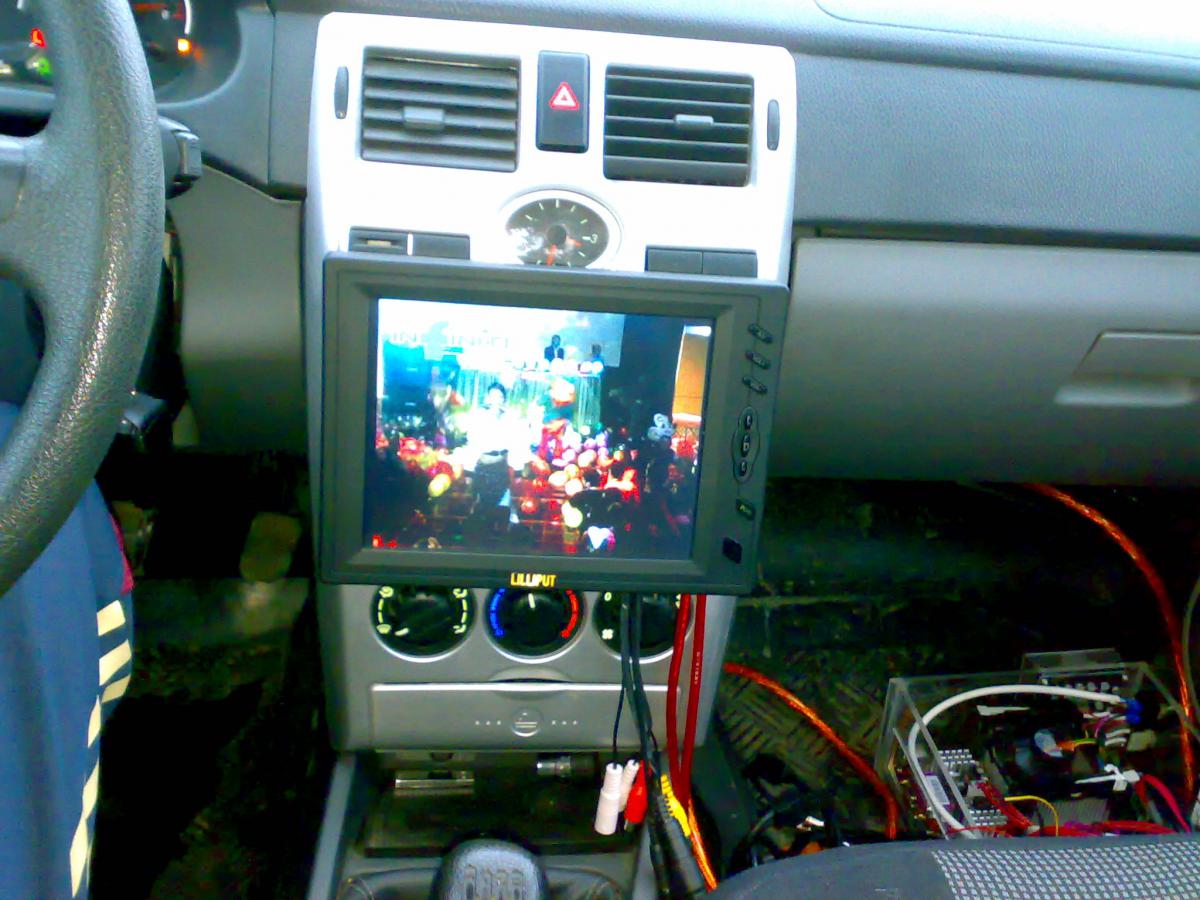 системник убрал под водительское сидения . Теперь осталось самое главнное врезать монитор в торпеду, на чем я пока и остановился, думаю покатаюсь чтоб комп выдержал все морозные дни , езжу уже неделю все работает на УРА ,утром только когда -25 давит комп не включаеться жесткий замерзает но мин 10 поездил машина прогрелась и смело можно включать,но это не так страшно не вседа ведь мороз давит.Пока все стоит вот так