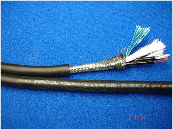 Вот образец правильного кабеля в качестве межблочника. Оплетка-плетение.. Наличие фольги как второго экрана и витая пара центральных жилок(зачем это нужно-будет далее) Называется он в обиходе как балансный микрофонный кабель