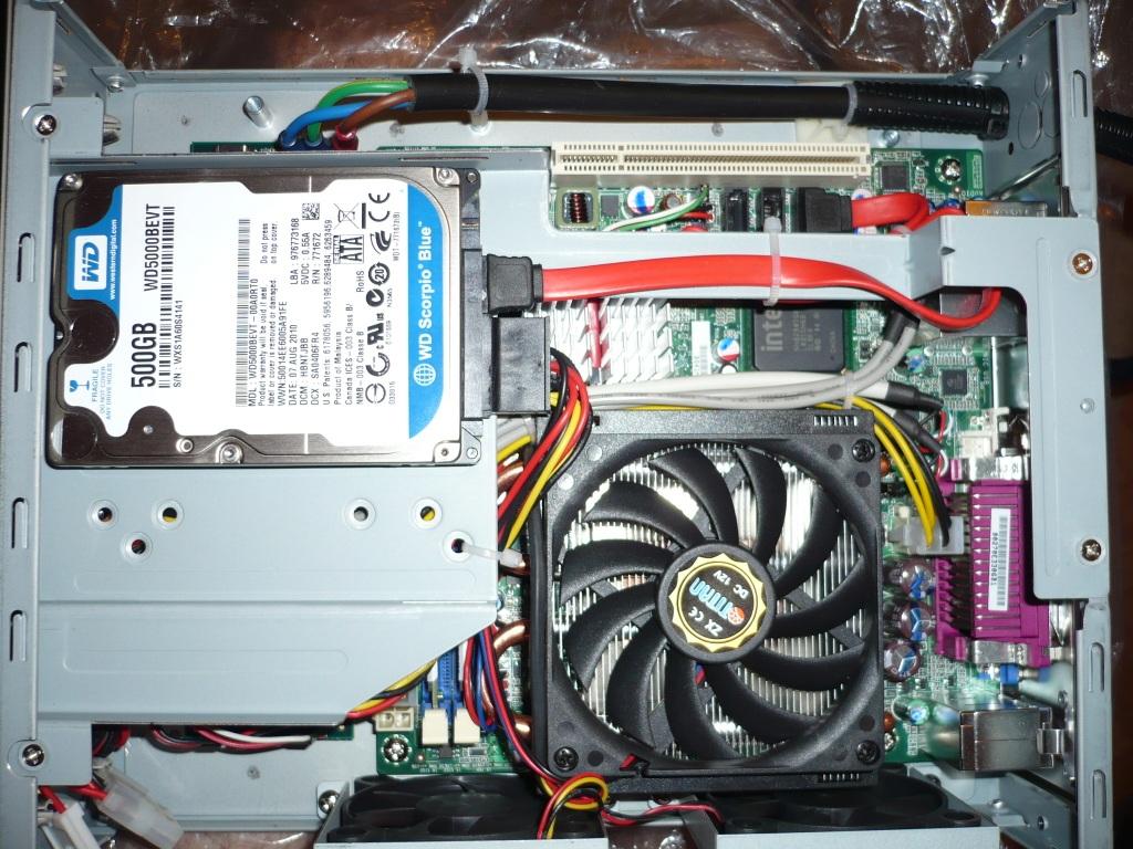 низкопрофильный кулер Titan TTC-NK54TZ (Intel Socket 775), HDD 500ГБ 5400 SATA 2,5" Western Digital 5000BEVT,