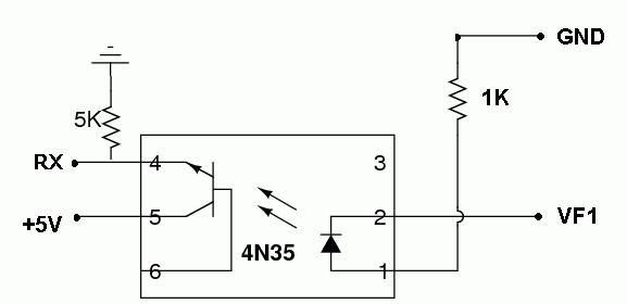 Сейчас попытался смоделировать все это в Протеусе (я там отлаживал разбор протокола). Вышло что в моей первой схеме там просто напросто горит оптрон (или еще чего с ним происходит) - 15-20 милисекунд нормальный сигнал, а потом на осцилографе идет пилообразная гребенка вместо нормальных TTL уровней.