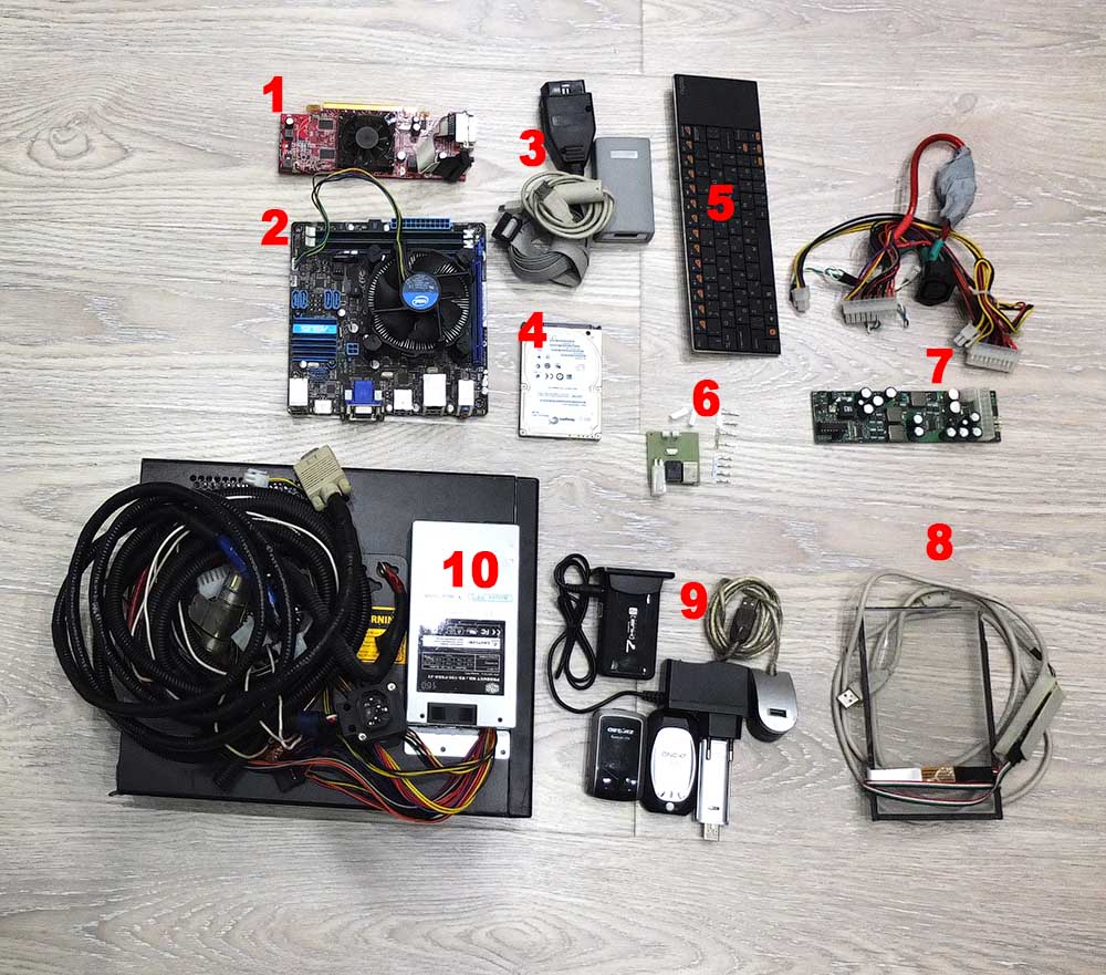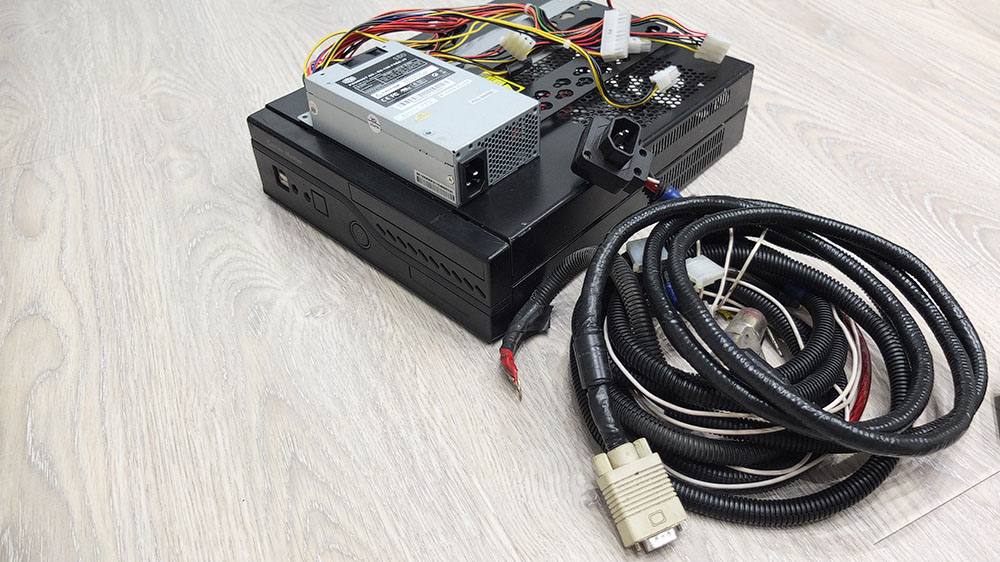 10) Тоже для галочки. Корпус немного попилен чтоб влазила видюха. Блок питания 220в 150ват и еще много всяких проводов для установки.