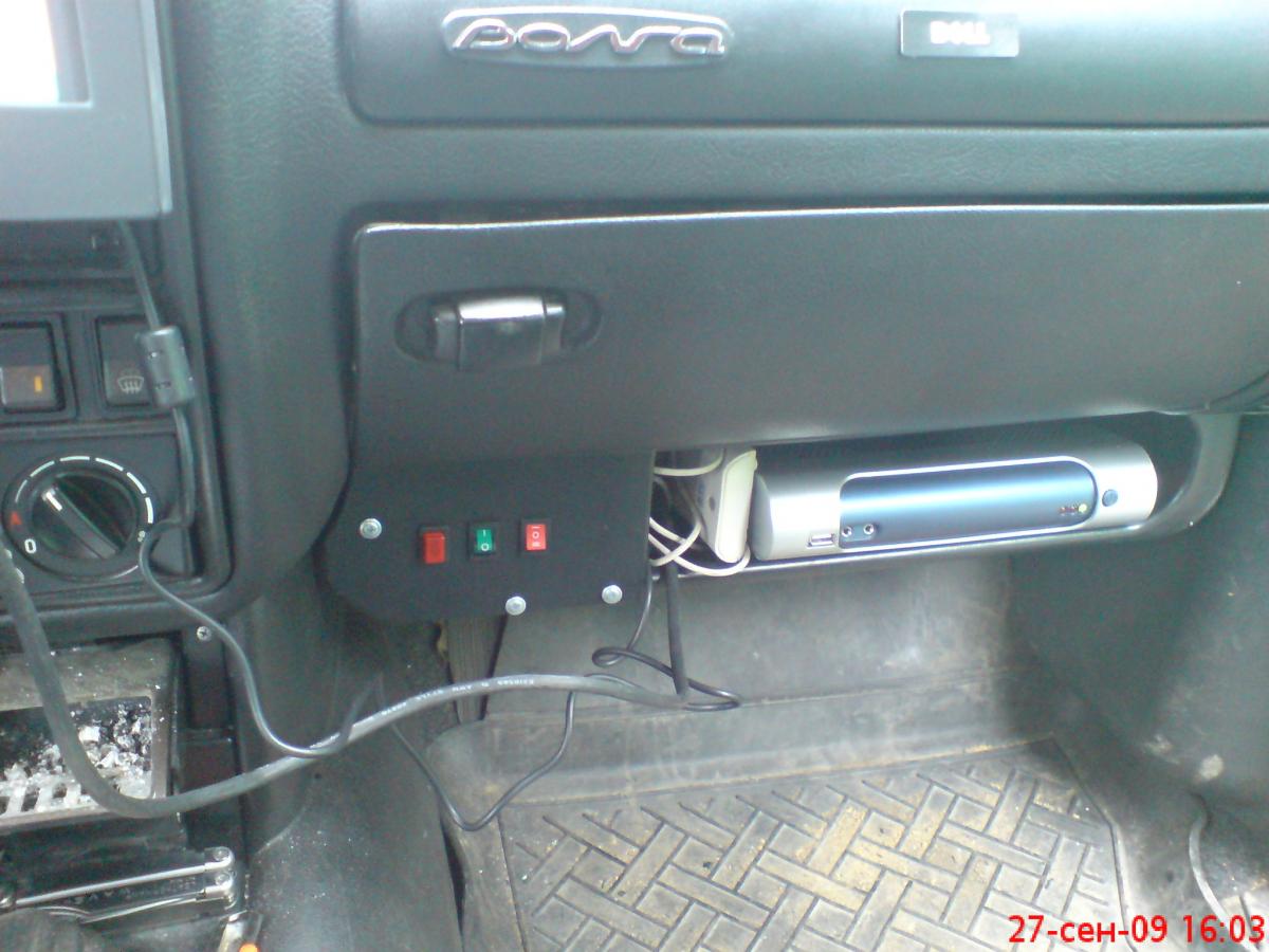 Монитор был обрезан и покрашен.Пока он "лёгкосъёмный",надевается на жалюзи воздуховодов.Поскольку ими не пользуюсь-в дальнейшем хочу сделать его выезжающим из этих самых жалюзей.