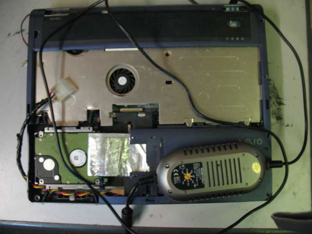 Системник сделан из бука сони без экрана. Хард 80гиг подвешен на вибро-поглотительном механизме. Проц 2.4 П4. 512 мозга. DVD читалка. + блок питания от 12v для этого бука.