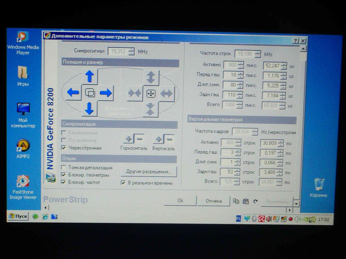 Разобрали машину и по аналогу схем подключения в Lexus: ни как не получается установить изображение на мониторе. То изображение троиться по строкам, но искажено разбитыми строками, то просто множество белых строчек в два ряда, то монитор переходит в чёрный экран.... Установлена само собой программа PowerStrip, там все настройки выставлялить как писалось на форумах, само собой пытался подстраивать, да и просто потом гнал частоты во всём диапозоне, что может что и выпрегнет. Без толку, максимум, это картинка рабочего стола с повторением три раза по ширине монитора (кадровая нормально держала), но оно было как через строку разбито.