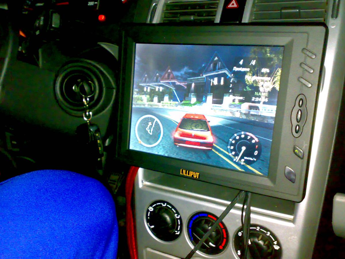 системник убрал под водительское сидения . Теперь осталось самое главнное врезать монитор в торпеду, на чем я пока и остановился, думаю покатаюсь чтоб комп выдержал все морозные дни , езжу уже неделю все работает на УРА ,утром только когда -25 давит комп не включаеться жесткий замерзает но мин 10 поездил машина прогрелась и смело можно включать,но это не так страшно не вседа ведь мороз давит.Пока все стоит вот так
