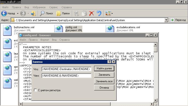 Заходим в папку C:\Documents and Settings\....\Local Settings\Application Data\Centrafuse\System