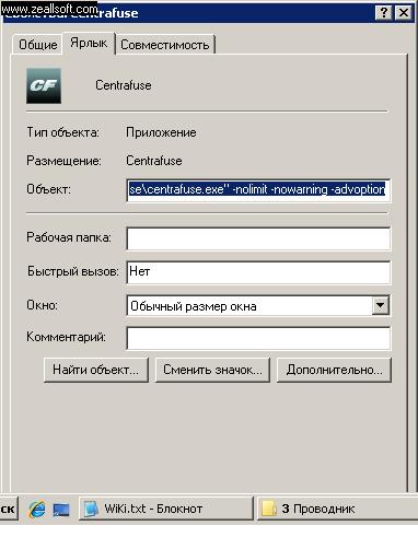 Правой клавишей шелкаем по ярлыку Cenrafuse.