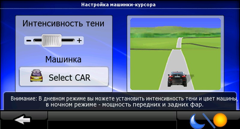 2.Меню выбора машинок.Пока только один лист-20шт.(пока не победил грамотное отображение выбора в ночном режиме,но на карте все ОК