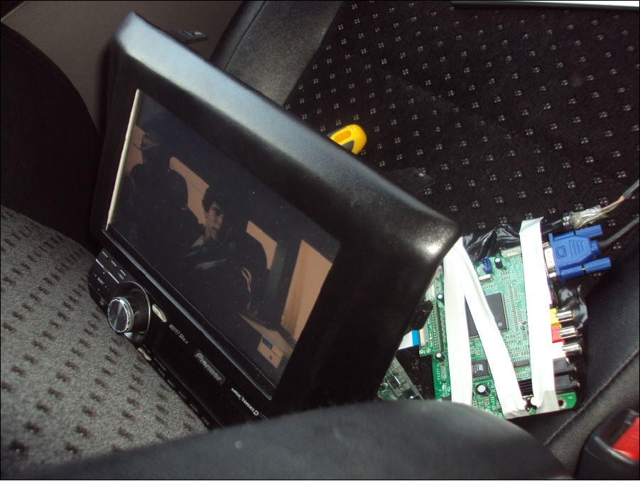 Вот мой прошлый проект, машину как и хотел, поменял, с чайзера забрал все, комп, провода, + мафон тоже забрал, хоть и стоял он там еще до меня, но комп к нему подключал и очень он мне понравился, единственное матрицу поменял на hitachi TX18D11VM1CAA, мне она нравиться больше, во первых шлейф у нее отключается от самой матрицы (монтировать в панель удобней), во вторых у этой матрицы контроллер лучше, с тюнером, свидео входом, композитом и еще пару входов, вообщем мне кроме телика и камеры заднего вида больше не надо.