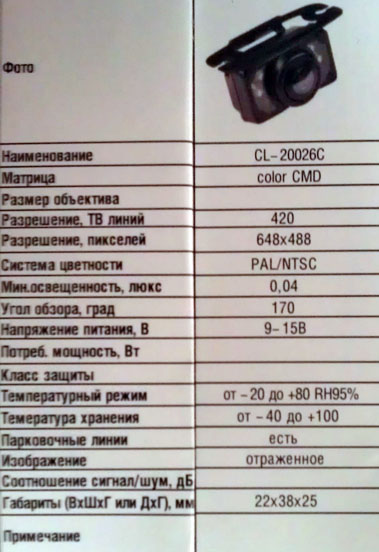Камера систему цветности PAL (не смотря на описание).