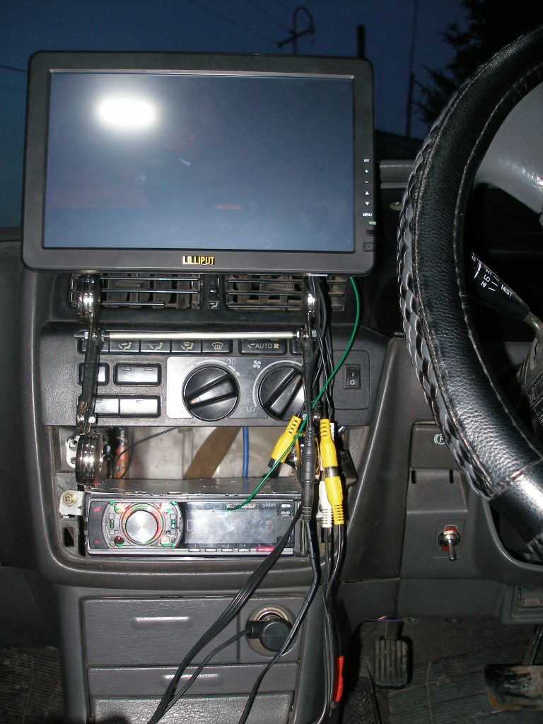 P.S. Моник в авто всего на 2-3 см (примерно) выше панели получился... и воздуховоды открыты на половину.
