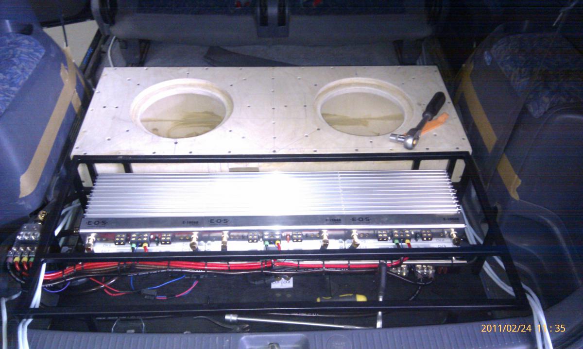 Для установки процессора, четырех усилителей и двух сабов придется пожертвовать третим рядом сидений. Все будет монтироваться в пол, чтобы можно было пользоваться багажником. Комп планирую запихнуть под пассажирское сидение.