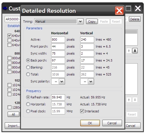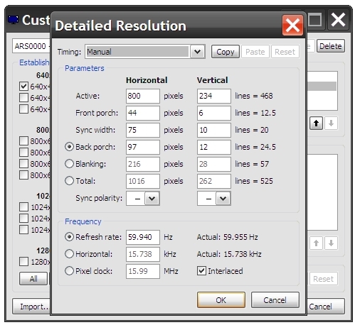 Если ранее видеосигнал carPC подавался непосредственно на RGB вход дисплея, и достаточно было задать частотные параметры сигнала в пределах, с которыми работает скалер дисплея, то в случае подачи видеосигнала через вход NAVI, параметры синхронизации должны четко соответствовать параметрам штатного RGB.