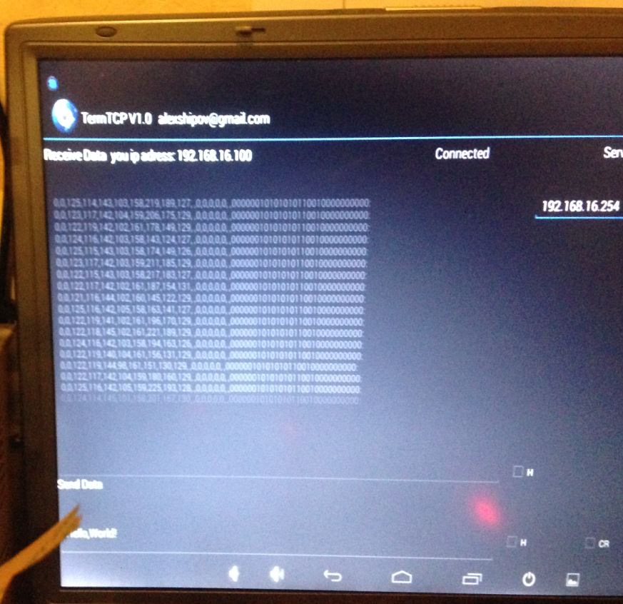На андроиде проверить передачу данных можно прогой https://play.google.com/store/apps/d...shipov.termtcp