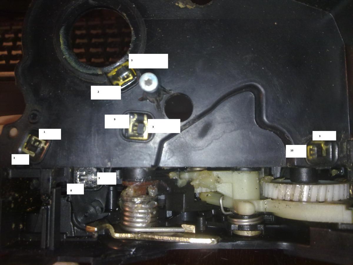Там же, внутри, находится мотор открытия\закрытия двери и, предположительно, два датчика, показывающие его состояние, именно ради них придется разобрать корпус.