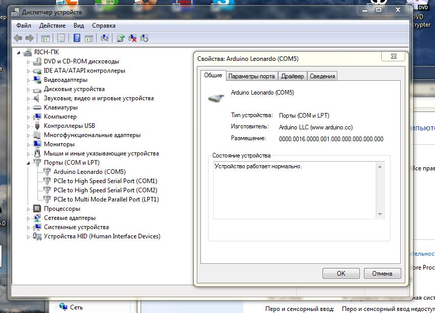 Нужен какой-то специальный драйвер? При подключении ардуины в USB-порт винды установили драйвер и устройство показывается в списке "Устройства и принтеры", как CarDuino (пробовал также устанавливать драйвера вручную из комплекта, идущего с IDE). В Диспетчере устройств в разделе "LPT и COM порты" отображается COM4.